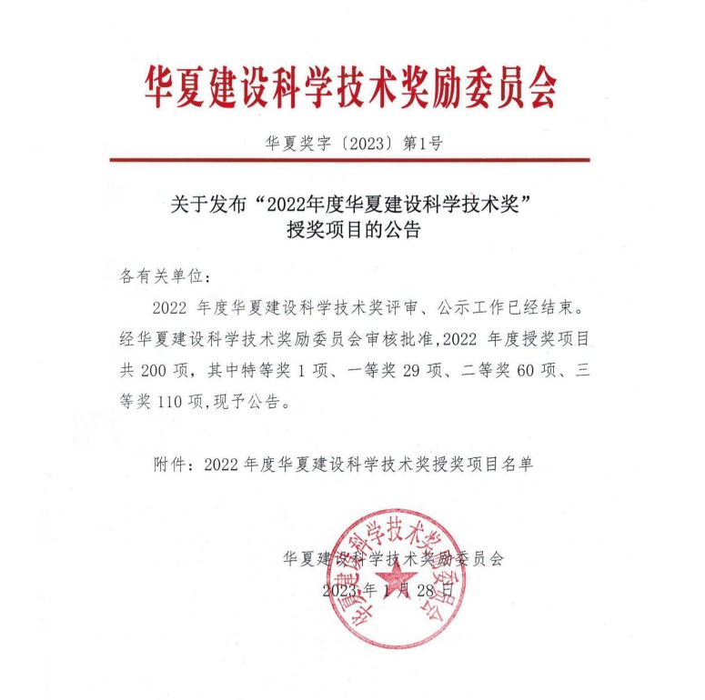 日前,课题成果——大型BIM设计施工软件研发与推广应用获得了2022年度华夏建设科学技术奖一等奖,奖项由天津星空xingkong电竞物联科技股份有限公司、中建工程产业技术研究院有限公司、广联达科技股份有限公司、北京盈建科软件股份有限公司等单位联合申报。